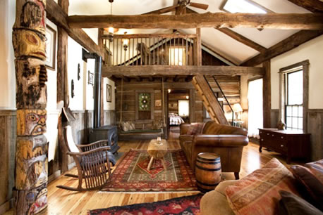 The Pioneer Trading Post is beautifully appointed and a step above your typical vacation cabin rental. The Pioneer Trading Post has been recently renovated with emphasis on Appalachian culture. You will find early American chestnut walls and ceilings, vintage oak floors, spinning wheels, church pews, butter churns, and family heirlooms throughout, yet with all the amenities of comfortable, modern living.