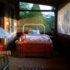 The log cabin rental offers 4 beautifully decorated bedrooms, each with its' own special charm and appeal. All beds have new quality mattresses with 100% cotton sheets, feather pillows and authentic hand stitched quilts for the feel you only get at Granny's house. The log cabin has 3 Queen beds, 3 Twins and 1 Full size bed on the sleeping porch.