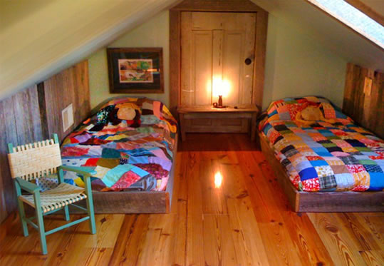 The loft is a favorite among children and adults alike. It is just above the living room in an attic space with a balcony overlooking the living room.